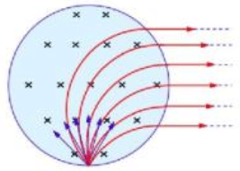 当且仅当磁场半径和粒子在磁场中半径相同时成立。即半径为R的圆形磁场中同一点不同角度入射的v=mqBR的粒子离开时方向均垂直于入射点与圆心的连线。