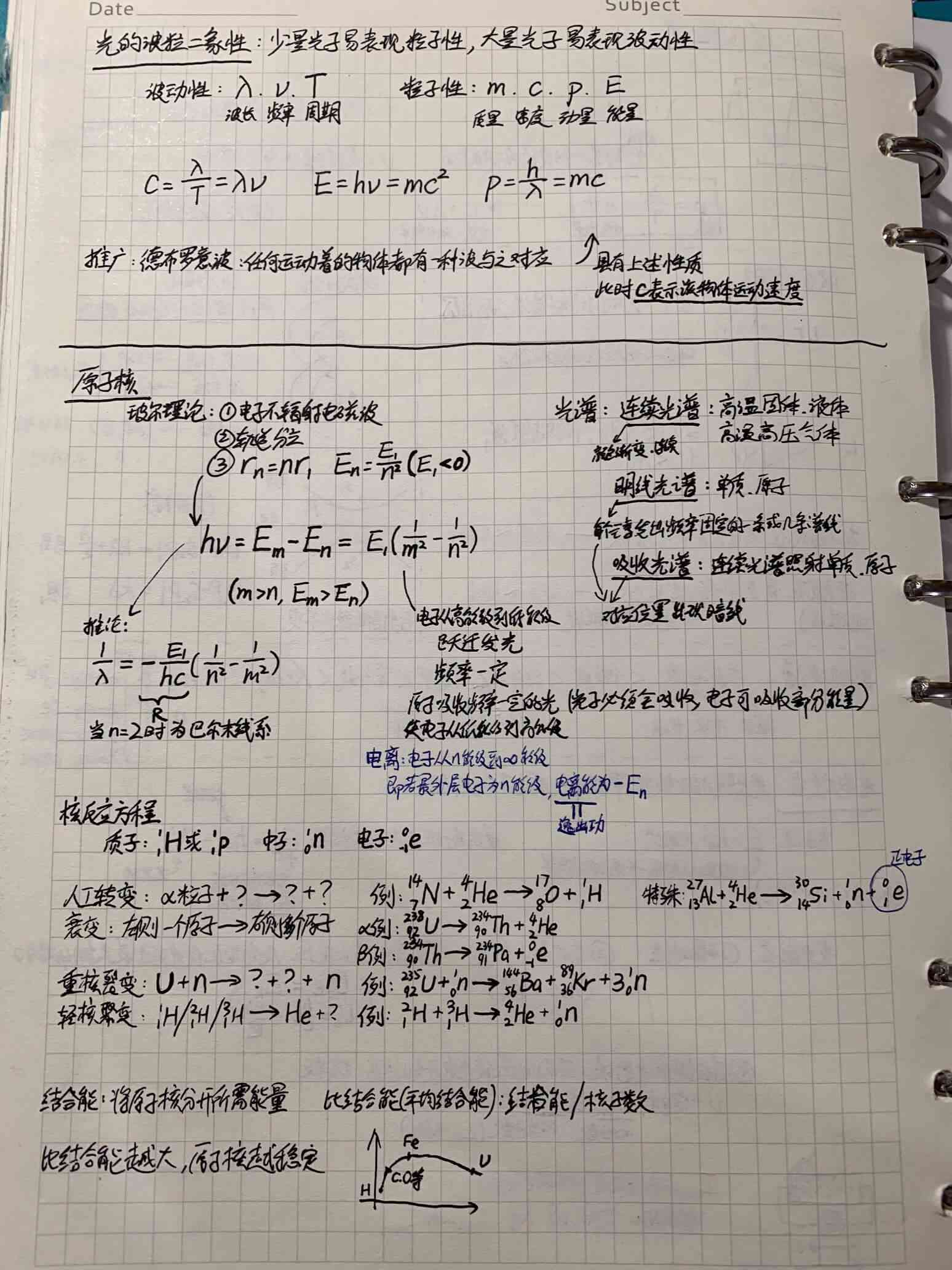 - 卢瑟福: 通过α粒子散射实验,提出原子核式结构模型。后通过α粒子轰击N核发现质子。