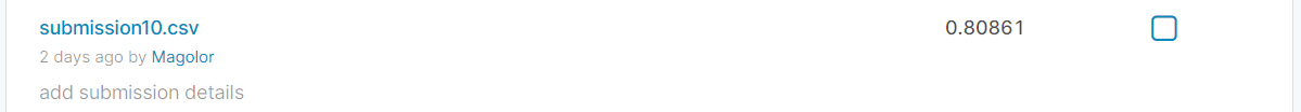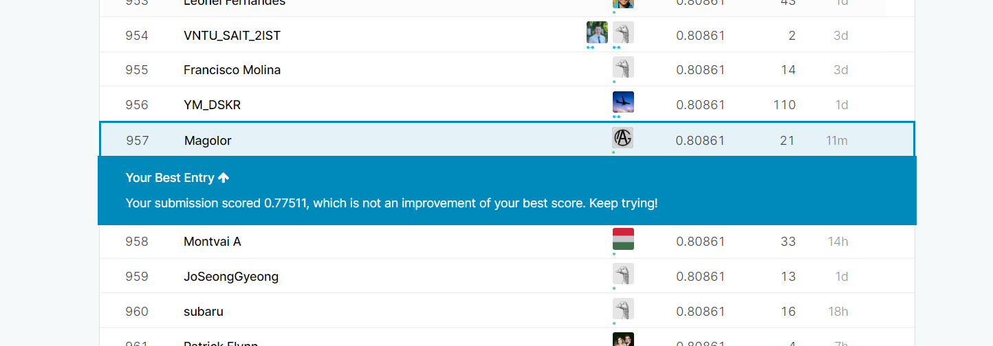 目前实现的最优解为,在Top 的水平(作为Kaggle入门比赛,榜单每三个月会清零一次),很可惜的是没能记录下参数。另外一个事实是,这一最优解是在没有Ensemble的情况下做到的(某次运行中第一个训练完成的神经网络)。