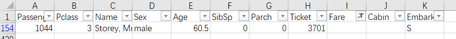 再次运行Python程序得到少量NaN输出结果于是发现在Excel中筛选或用pandas的isnull()函数检查发现,测试集有人票价数据缺失。